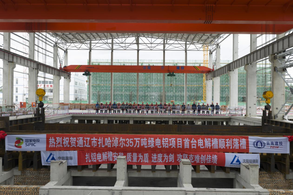 通遼市扎哈淖爾35萬噸綠電鋁項目首臺電解槽順利落槽