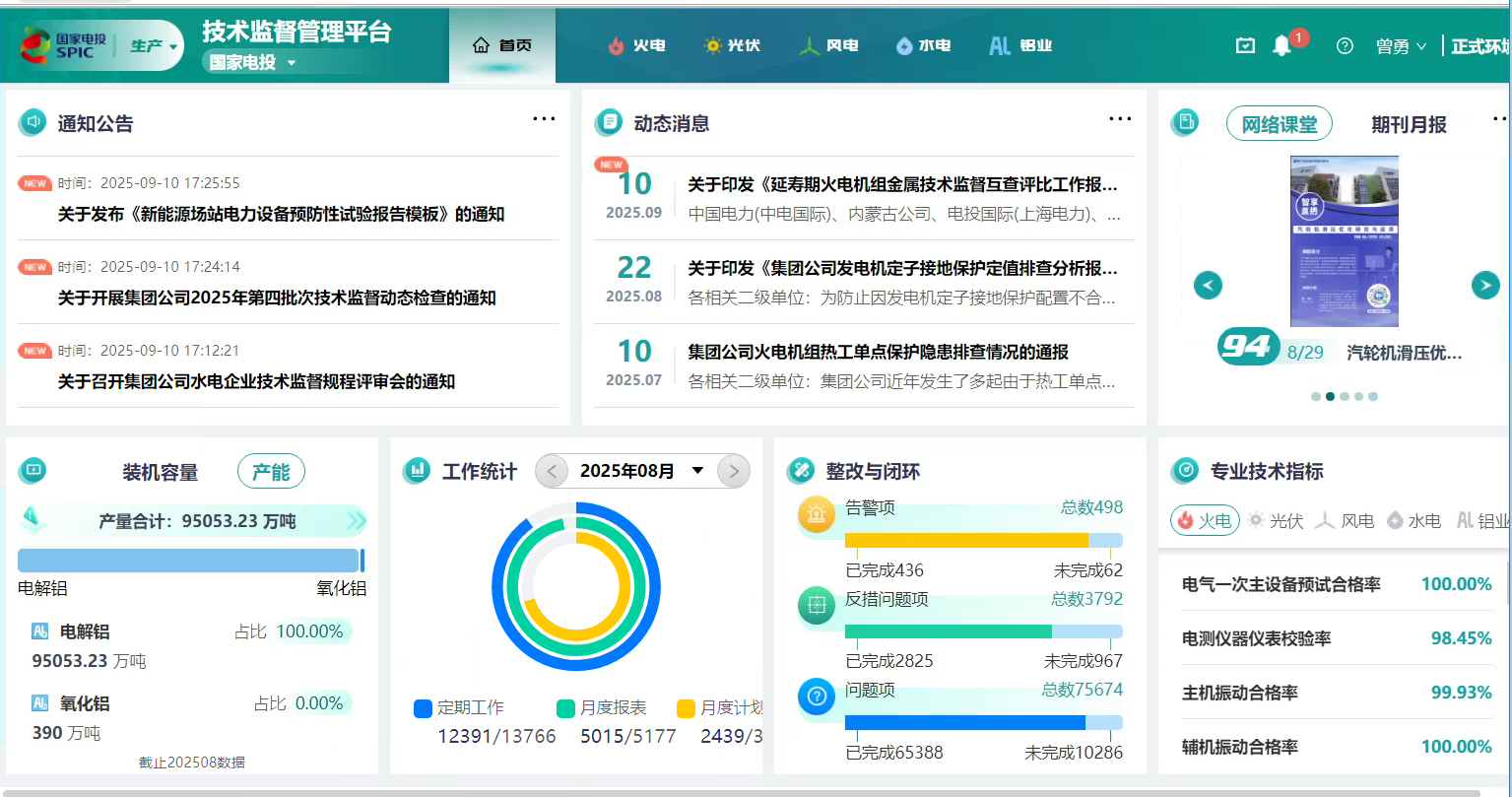 9月15日,國(guó)家電投集團(tuán)技術(shù)監(jiān)督管理平臺(tái)完成升級(jí)迭代,鋁業(yè)板塊經(jīng)過半個(gè)月平穩(wěn)試運(yùn)行正式上線。