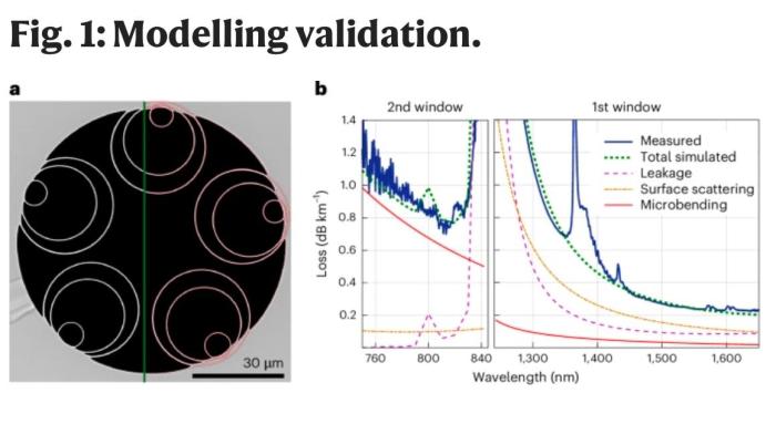 該論文介紹,用于通信的光纖通常為實心石英玻璃的設(shè)計,雖然經(jīng)過數(shù)十年的優(yōu)化,但信號損耗一直是個限制因素。因此,這種光纖在傳輸約20公里后會損耗約一半的光,這就要求經(jīng)常使用光纖放大器來增強(qiáng)長距離傳輸?shù)男盘,如洲際陸地或海底光纜。降低信號損耗程度能在狹窄波長范圍內(nèi)實現(xiàn),但會限制可傳輸?shù)臄?shù)據(jù)量,這在過去幾十年里一直阻礙著光通信的發(fā)展。