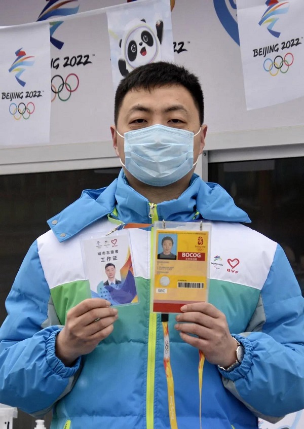 ▲王興在志愿服務后展示他的“雙奧”志愿者證件