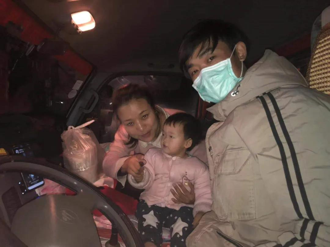 幫助麻城運(yùn)輸?shù)诙、三批口罩的司機(jī)是一對(duì)來(lái)自天津的小夫妻,還隨車(chē)帶有一個(gè)一歲多的小孩。一家人到湖北送貨時(shí)趕上疫情爆發(fā),決定暫時(shí)不回天津,而是幫各地運(yùn)送醫(yī)用物資,一家人住在貨車(chē)上以方便面充饑。