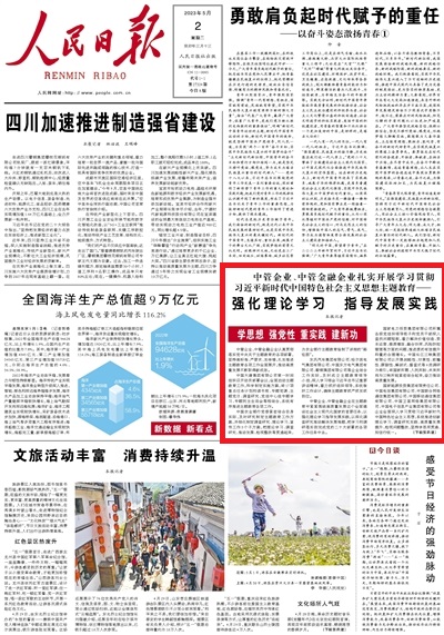 《人民日?qǐng)?bào)》頭版:中管企業(yè)、中管金融企業(yè)扎實(shí)開展學(xué)習(xí)貫徹習(xí)近平新時(shí)代中國特色社會(huì)主義思想主題教育——強(qiáng)化理論學(xué)習(xí) 指導(dǎo)發(fā)展實(shí)踐(學(xué)思想 強(qiáng)黨性 重實(shí)踐 建新功)