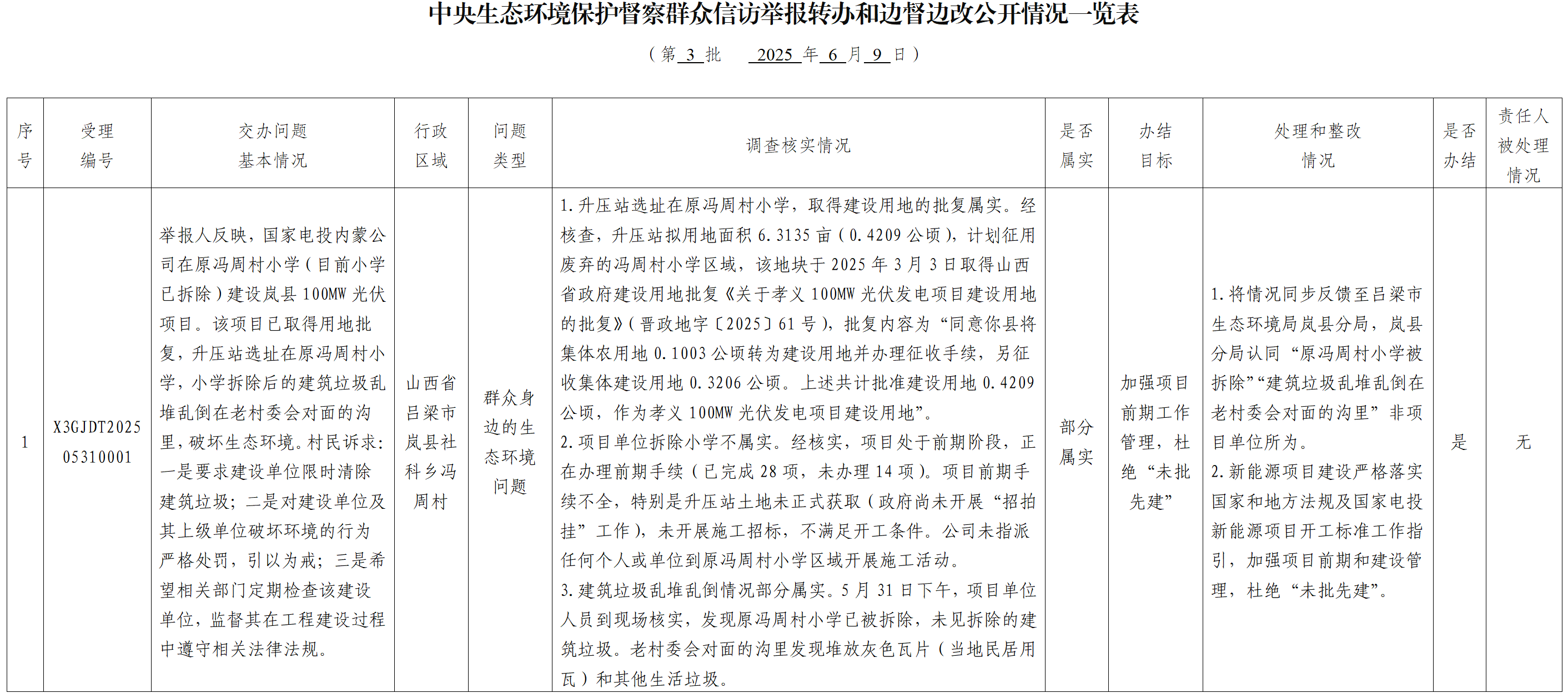 中央生態(tài)環(huán)境保護督察群眾信訪舉報轉(zhuǎn)辦和邊督邊改公開情況一覽表(第三批)
