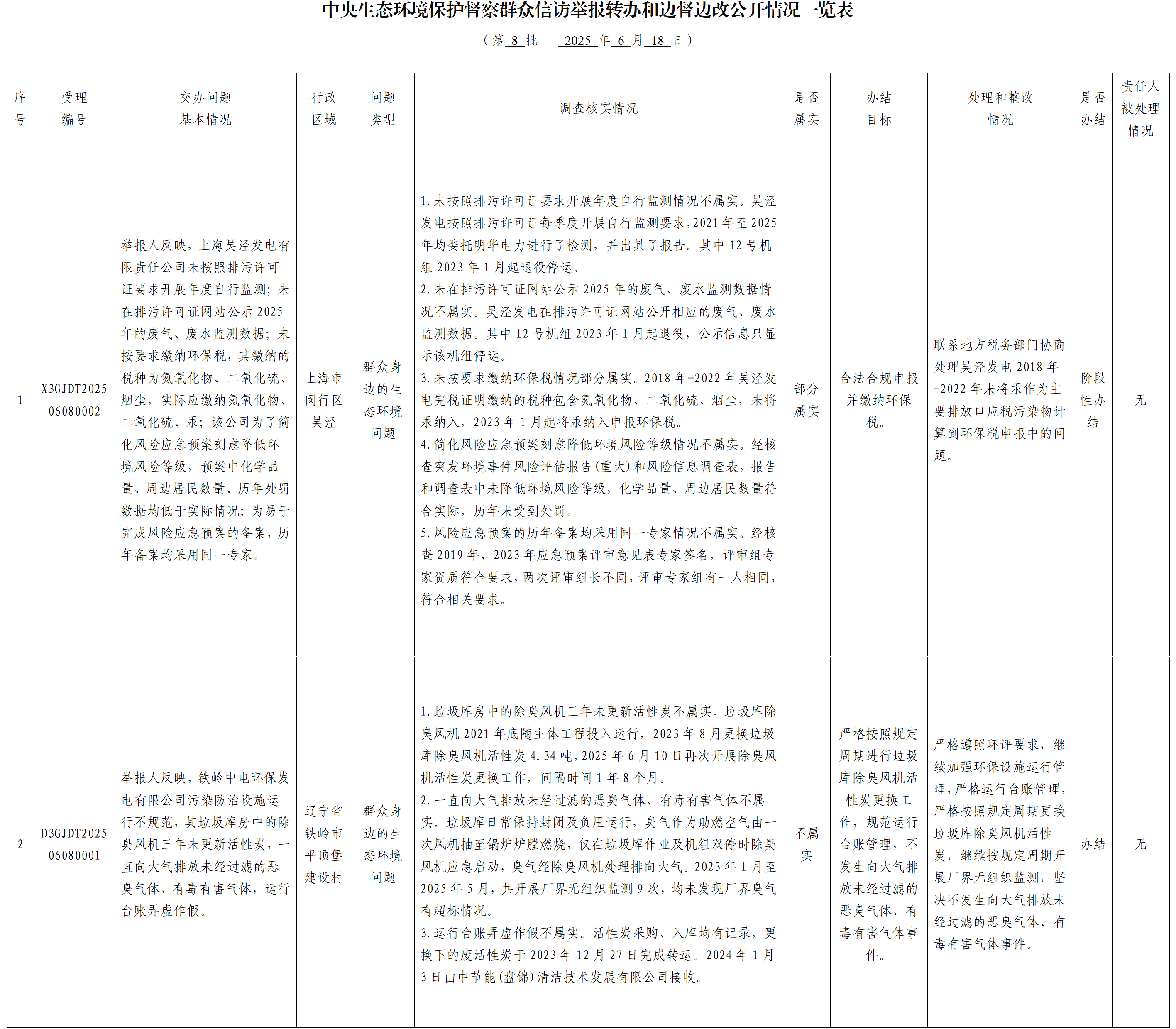 中央生態(tài)環(huán)境保護督察群眾信訪舉報轉(zhuǎn)辦和邊督邊改公開情況一覽表(第八批)
