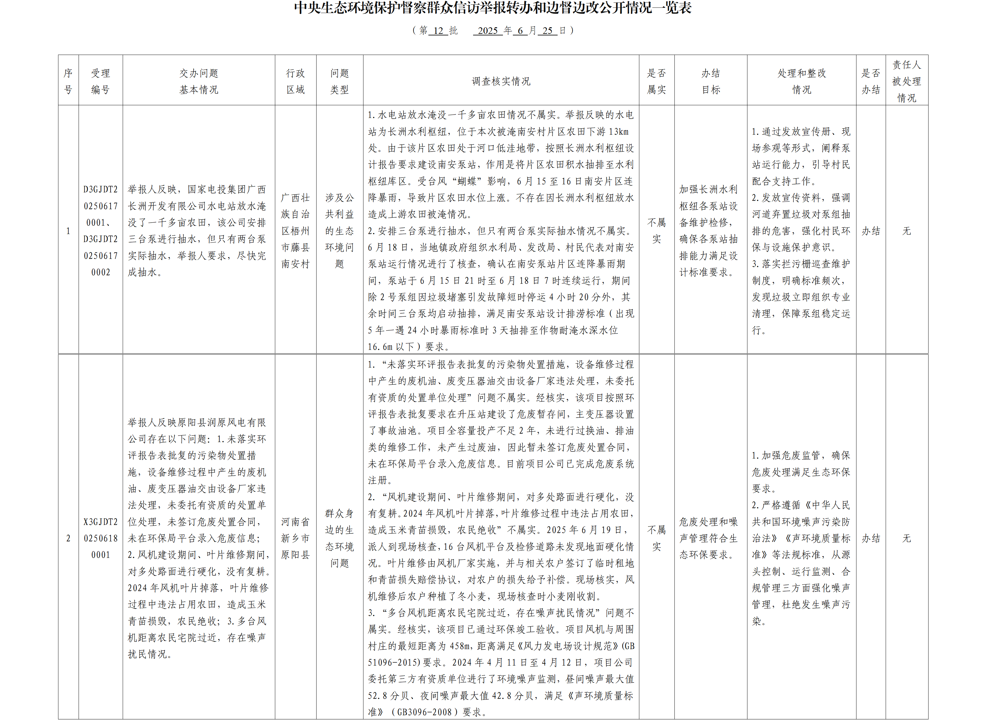 中央生態(tài)環(huán)境保護督察群眾信訪舉報轉辦和邊督邊改公開情況一覽表(第十二批)